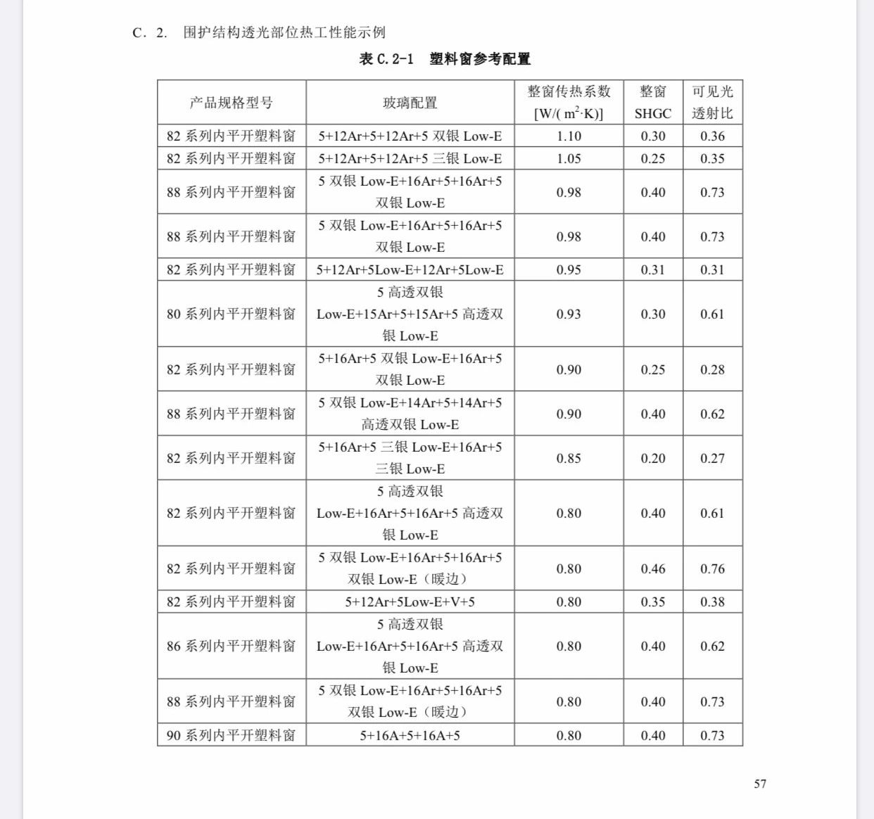 表 C.2-1  塑料窗參考配置