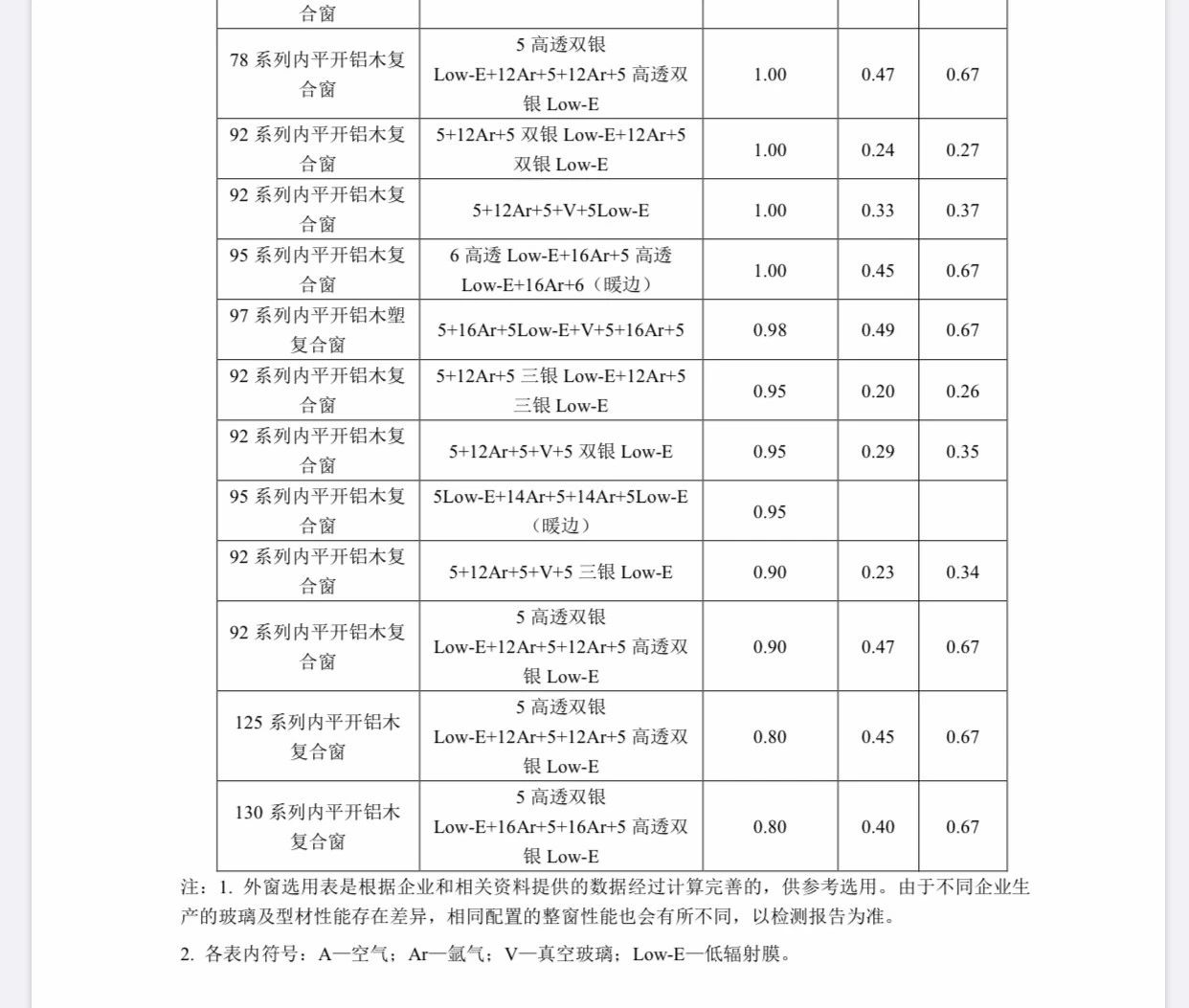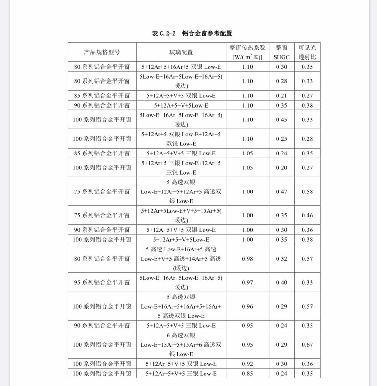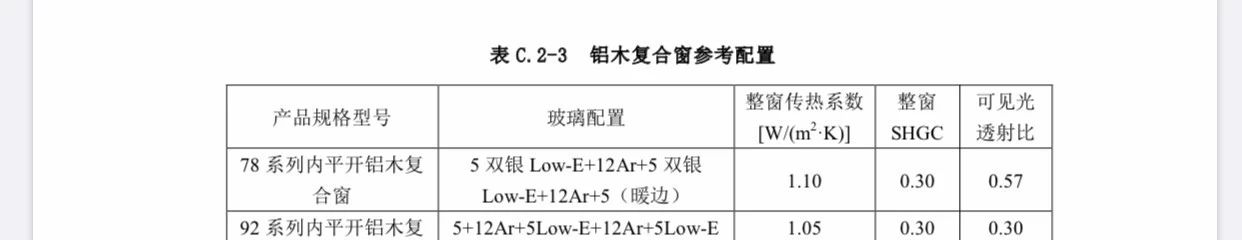 表 C.2-3  鋁木復(fù)合窗參考配置