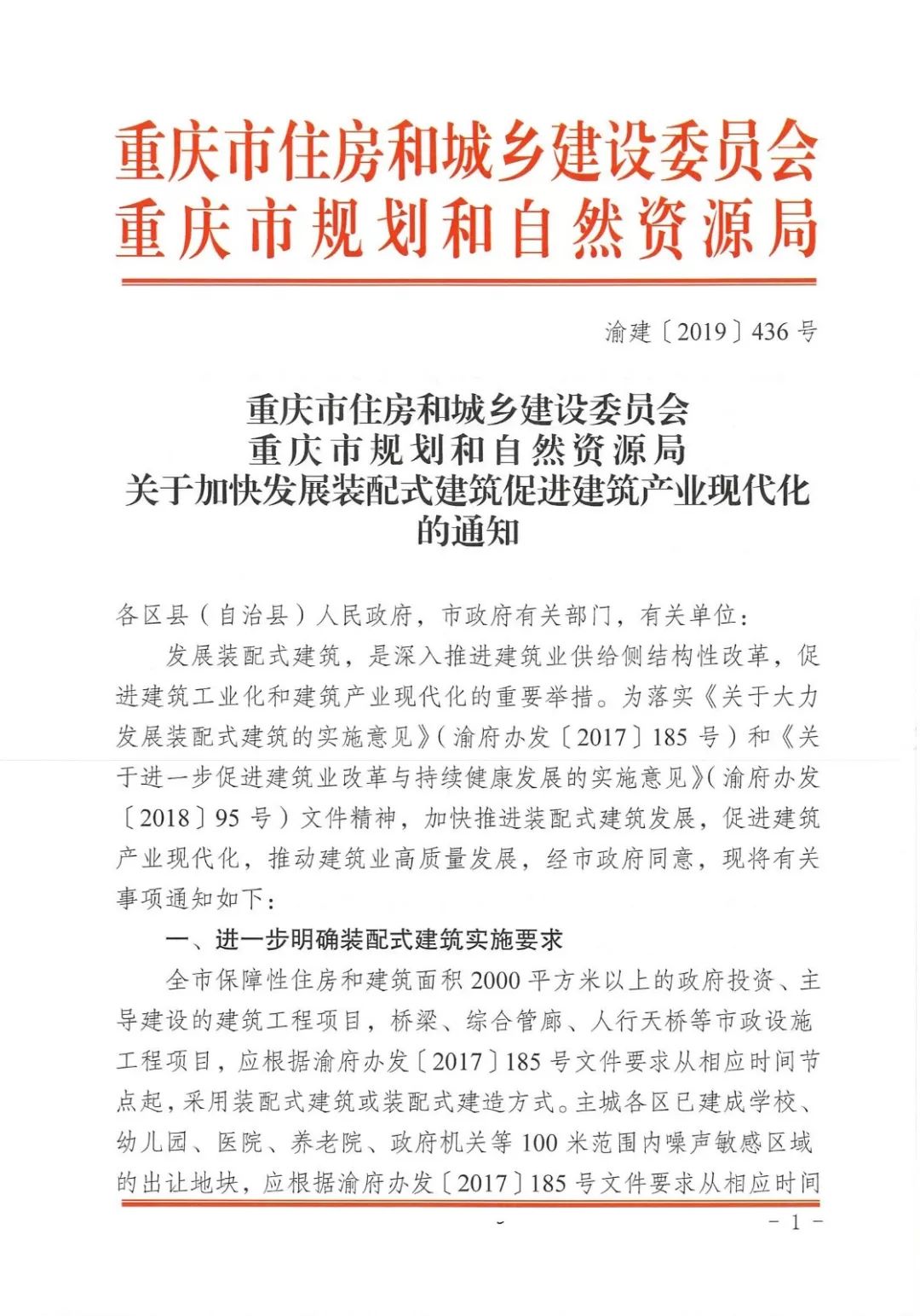 發(fā)展裝配式建筑,是深入推進(jìn)建筑業(yè)供給側(cè)結(jié)構(gòu)性改革,促進(jìn)建筑工業(yè)化和建筑產(chǎn)業(yè)現(xiàn)代化的重要舉措。為落實(shí)《關(guān)于大力發(fā)展裝配式建筑的實(shí)施意見(jiàn)》(渝府辦發(fā)〔2017〕185號(hào))和《關(guān)于進(jìn)一步促進(jìn)建筑業(yè)改革與持續(xù)健康發(fā)展的實(shí)施意見(jiàn)》(渝府辦發(fā)〔2018〕95號(hào))文件精神,加快推進(jìn)裝配式建筑發(fā)展,促進(jìn)建筑產(chǎn)業(yè)現(xiàn)代化,推動(dòng)建筑業(yè)高質(zhì)量發(fā)展,經(jīng)市政府同意,現(xiàn)將有關(guān)事項(xiàng)通知如下: