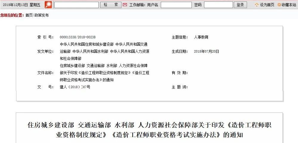 住房和城鄉(xiāng)建設部、交通運輸部、水利部、人力資源社會保障部于2018年印發(fā)《造價工程師職業(yè)資格制度規(guī)定》《造價工程師職業(yè)資格考試辦法》的通知。明確:造價工程師分為一級造價工程師和二級造價工程師。