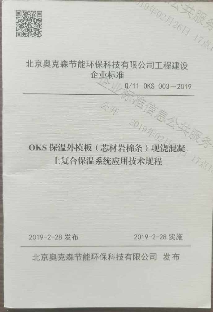 OKS保溫外模板(芯材巖棉條)現(xiàn)澆混凝土復(fù)合保溫系統(tǒng)應(yīng)用技術(shù)規(guī)程(Q/11 OKS 003-2019)天津