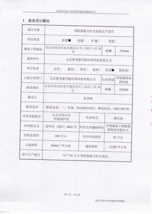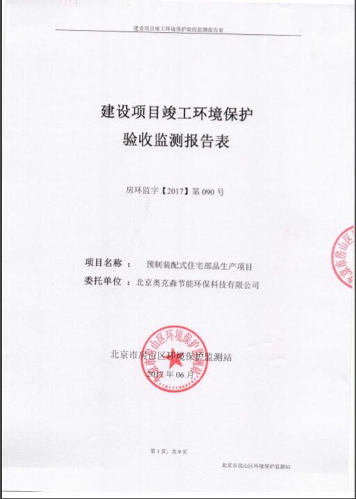 北京奧克森節(jié)能環(huán)??萍加邢薰居?017年6月做了關于預制裝配式住宅部品生產(chǎn)項目的驗收工作?,F(xiàn)將驗收結果公示如下: