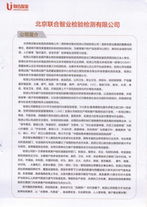 1、經(jīng)北京聯(lián)合智業(yè)檢驗檢測有限公司進行項目驗收的檢測,檢查結果均為合格;